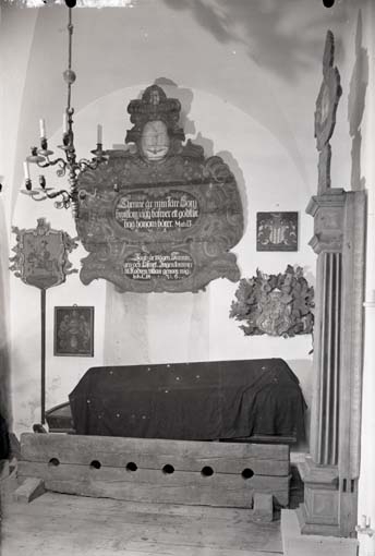 Kyrklig avdelning med bland annat skamstock och liksläde, Västmanlands läns museum, Västerås slott.