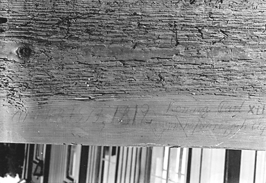 Detalj av inskrift på fönsterfoder.