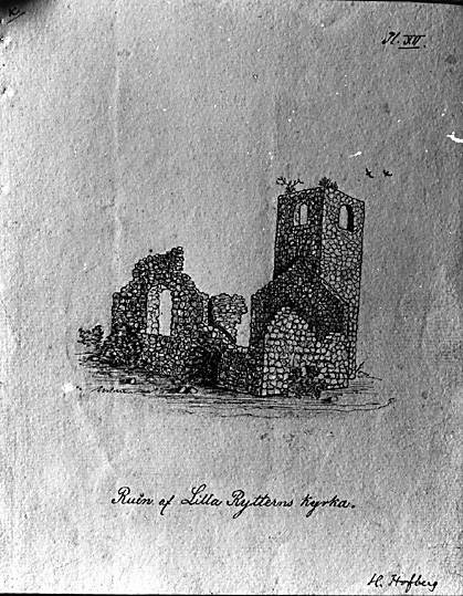 Lilla Rytterns kyrkoruin Västerås, tecknad av H Hafberg.