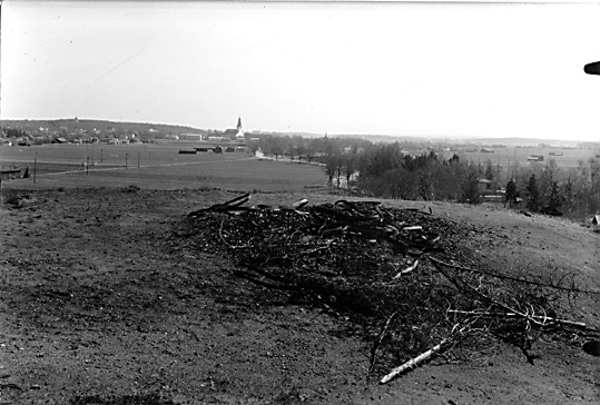Kvarlämnat skräp efter valborgsmässoeld på gravhögens topp, Ströbohög i Köping.
