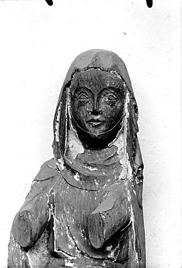 Detalj av altarskåpsfigur, träskulptur, Hubbo kyrka, Västerås.