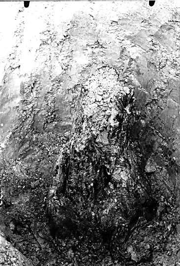 Altuna socken Fröslunda RAÄ fornlämning 30. Del av stolpe i graven.