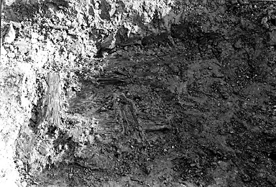 Altuna socken Fröslunda RAÄ fornlämning 30. Trävirke i gravhögen.