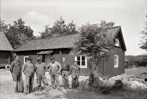 Arbetslaget under uppförandet av Vallby friluftsmuseum i Västerås.