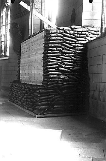 Eric XIV grav inklädd med brädor och sandsäckar, Västerås Domkyrka.