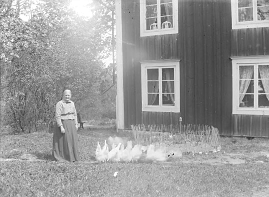 Porträtt, Sara Wretström från Västervåla, med en flock höns.