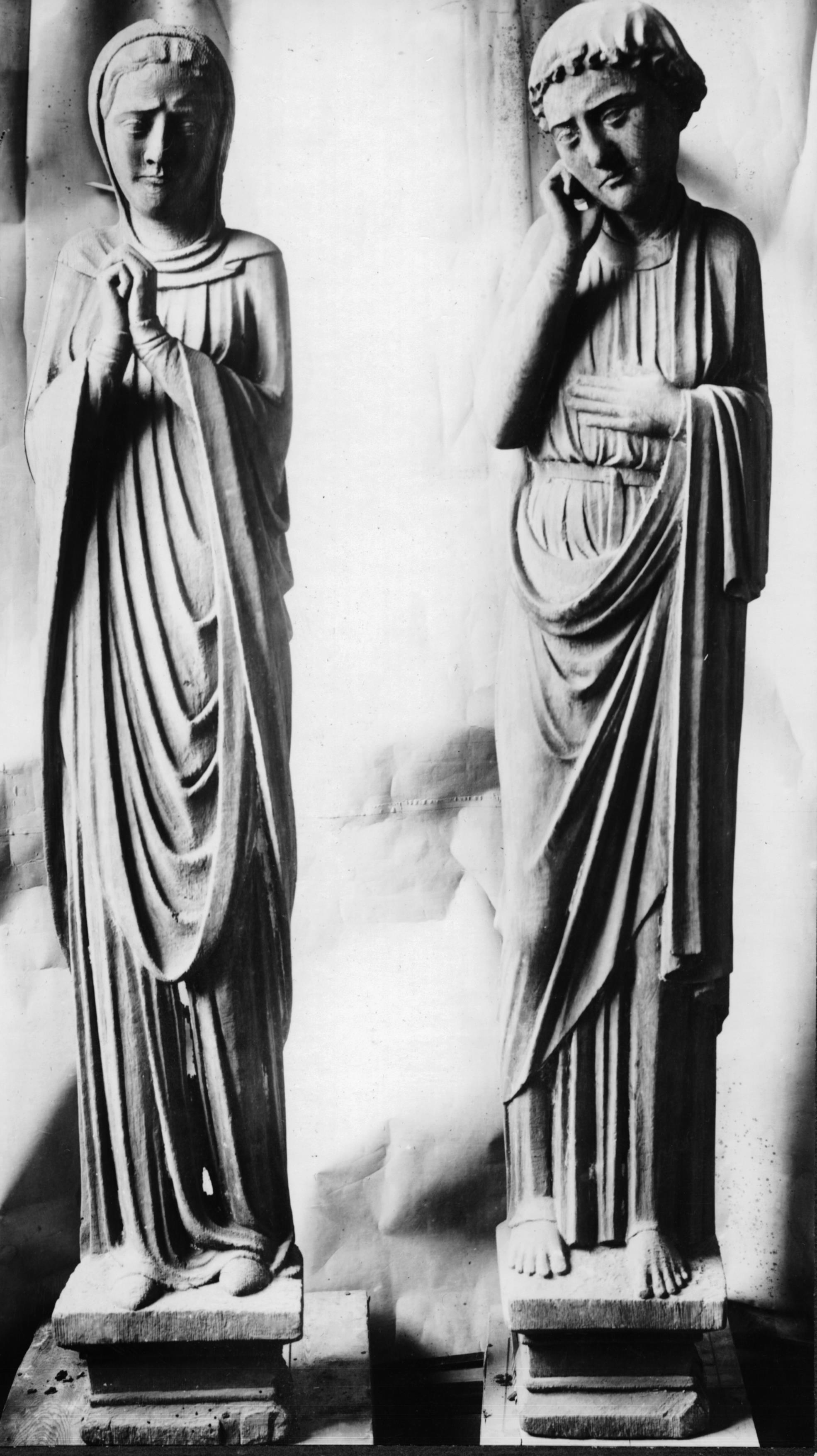 Kalvariegrupp, Maria och Johannes av snidad ek, ingående i en kalvariegrupp. Gruppen daterad till 1250.