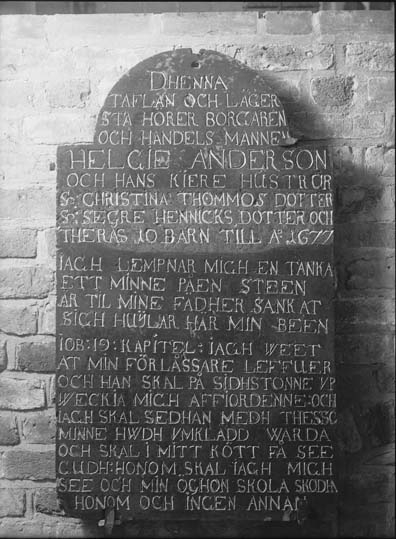 Gravsten över handelsmannen Helgie Anderson, Västerås Domkyrka.