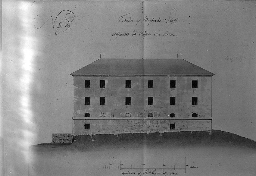 Västerås slott. Fasadritning, norra längans ytterfasad, uppmätning P.W. Palmroth 1814.
