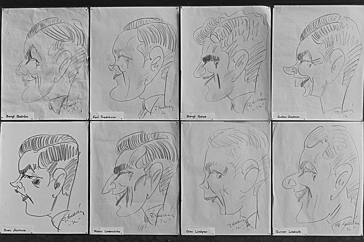 KFUM, Västerås. Karikatyrer av flera personer.