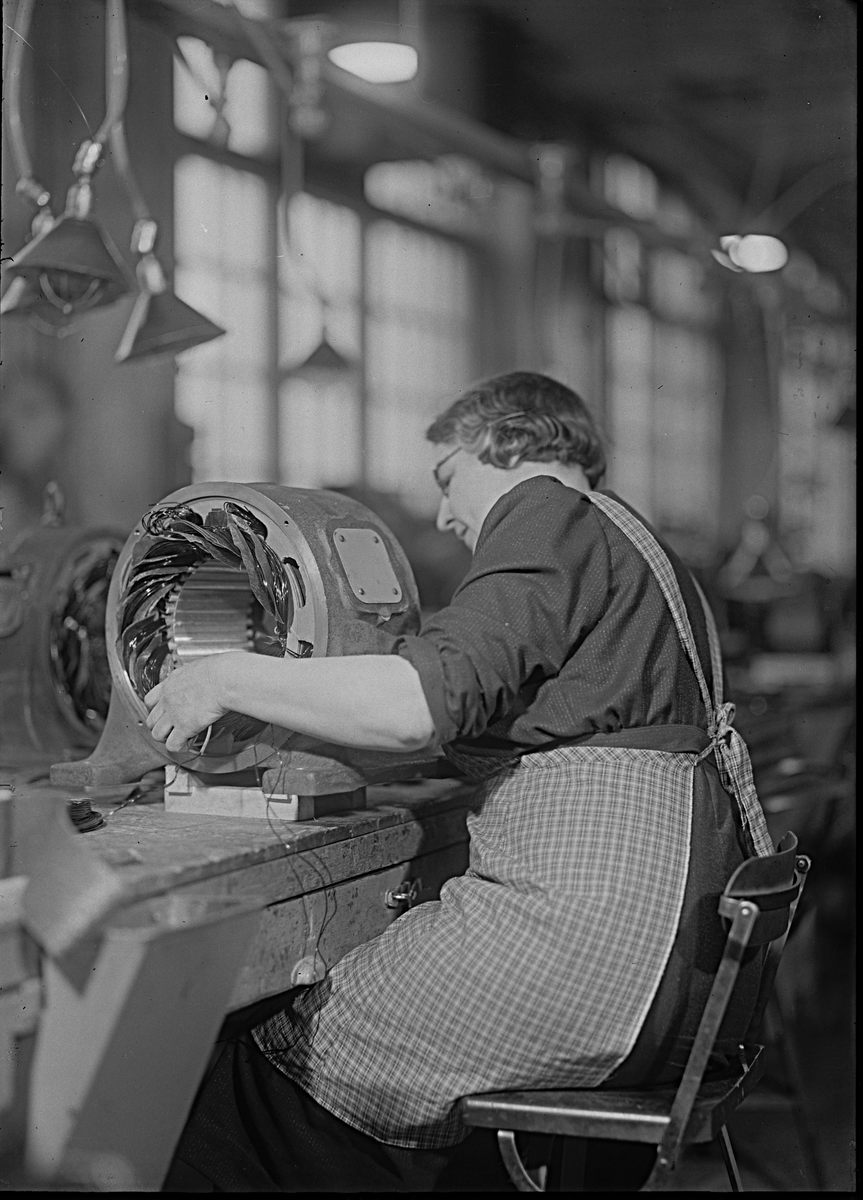 ASEA i Västerås. Kvinnlig lindare, under arbete.
