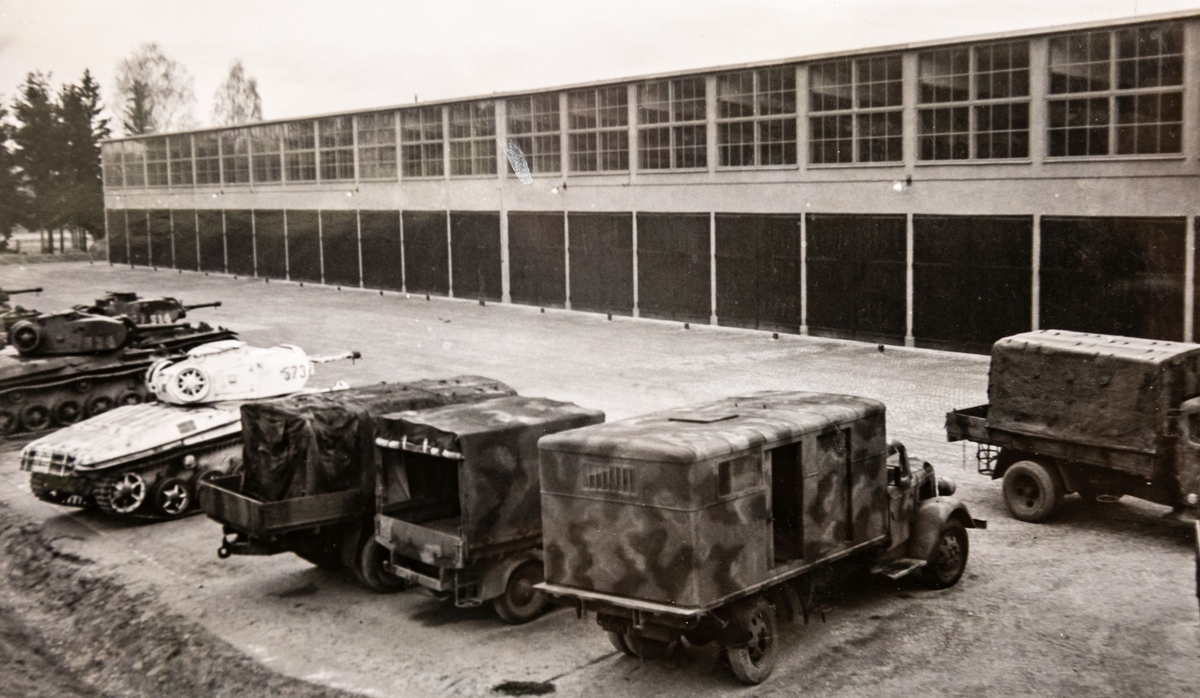 Stridsvagnsverkstaden, där några stridsvagnar väntar på att köra in.