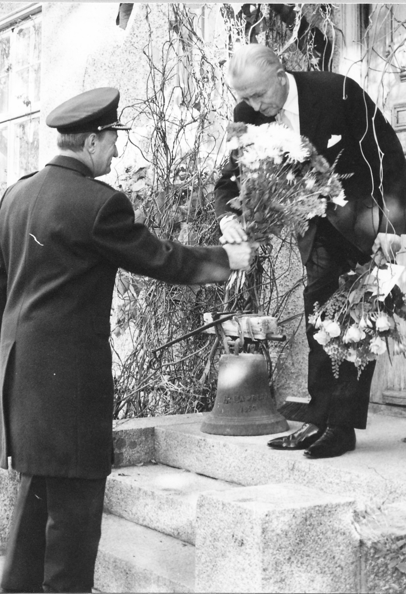 Regementschefen överste Stig Colliander, hyllade i tal jubilaren, överste Cavalli, och överlämnade blommor från regementet och kamratföreningen.