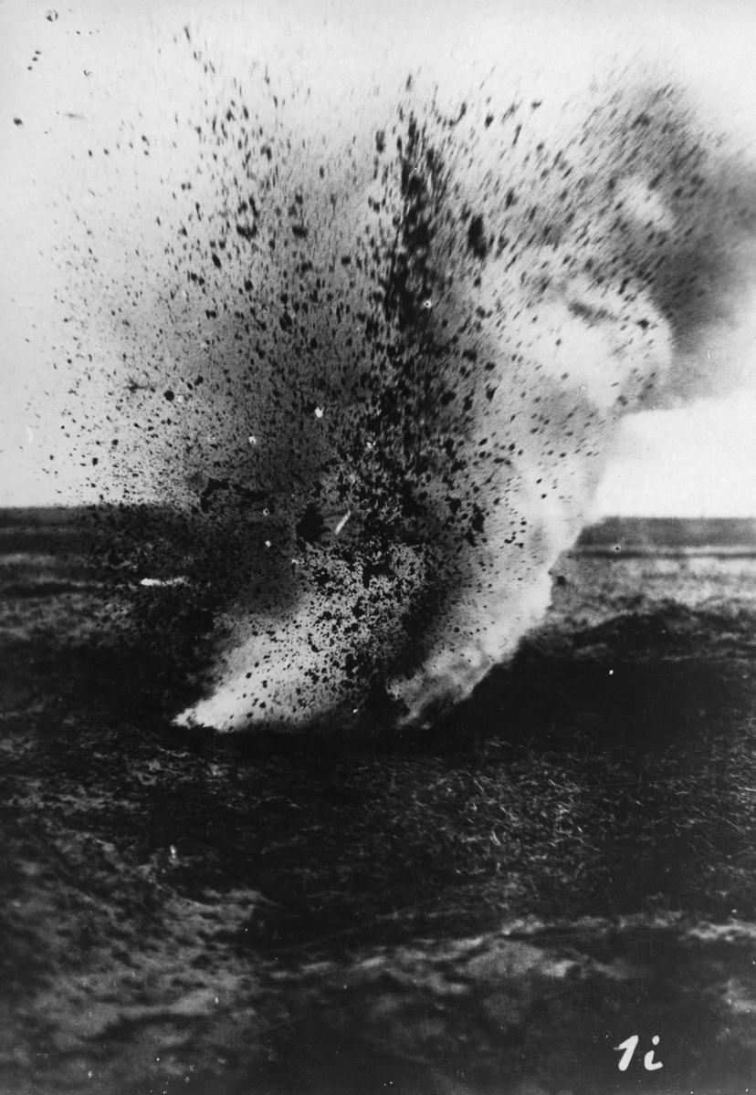 Titel: Första världskriget. Sprängförsök med tyska flygbomber.