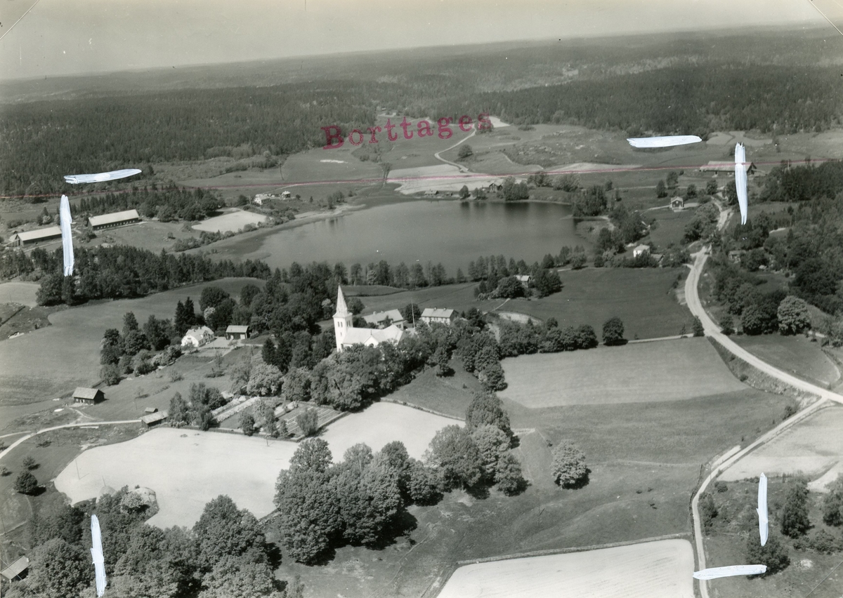 Flygfoto över Dalhem. Första bilden visar originalfotot, den andra den bild fotografen ville spara.