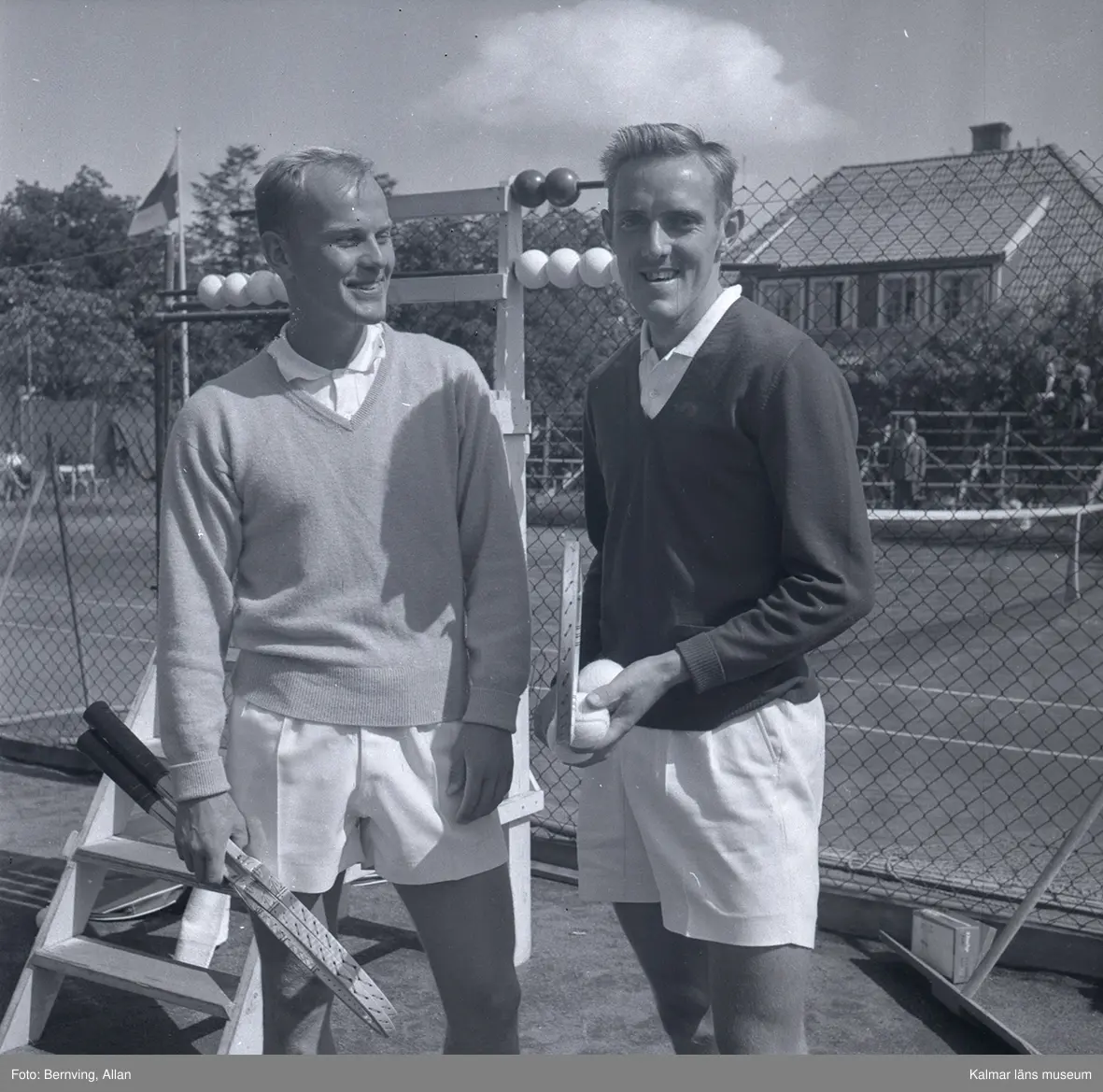 Tennisfinaler och prisutdelning en måndag. Två tennisspelare. Namn medföljande bild: Mjörne.