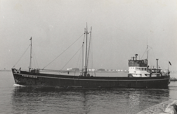 Lastmotorfartyget HANS-GEORG av Flensburg, Tyskland, i Malmö hamn 14.5.1965.