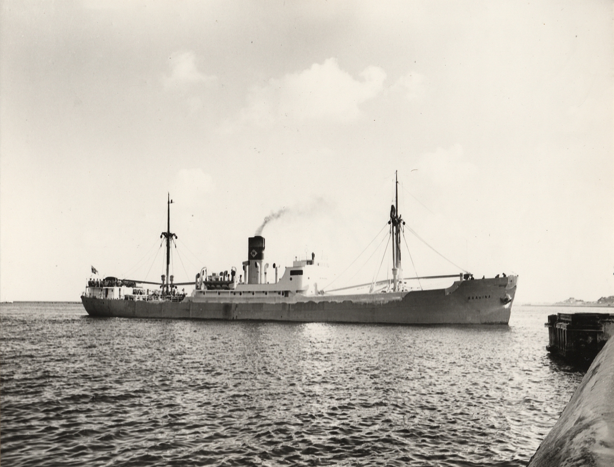 Foto i svartvitt visande lastångfartyget "RANDELSBORG". Foto från Köpenhamn under V.K. I, åren 1914 - 1917.