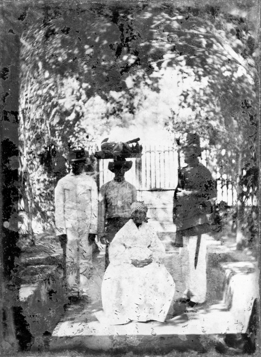 Tjänstefolk och vakt i svensk uniform hos den svenske guvernören i Gustavia, Saint Barthèlemy.