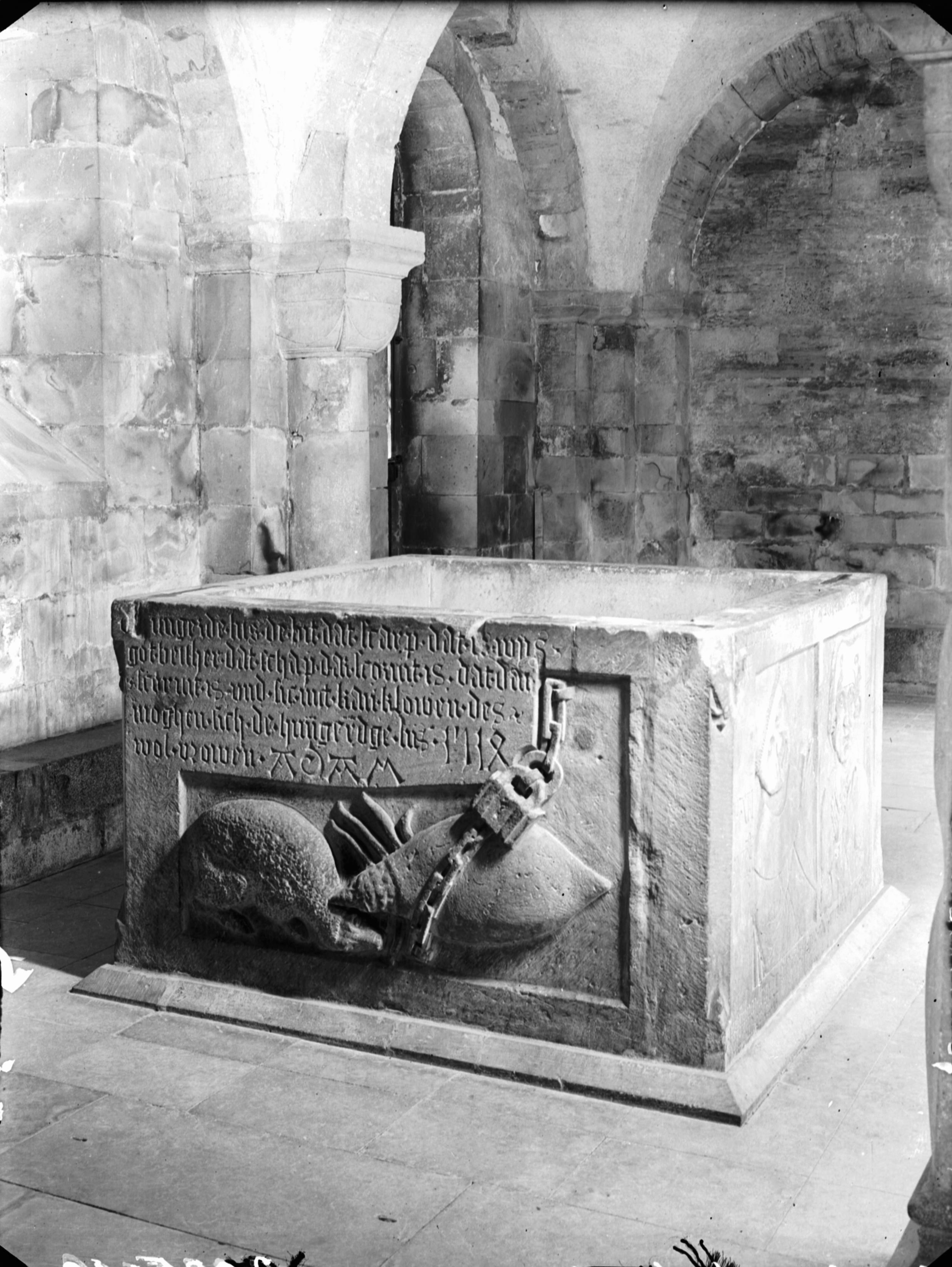 Kryptan, invigd 1123. Norra korsarmen. Brunnen.