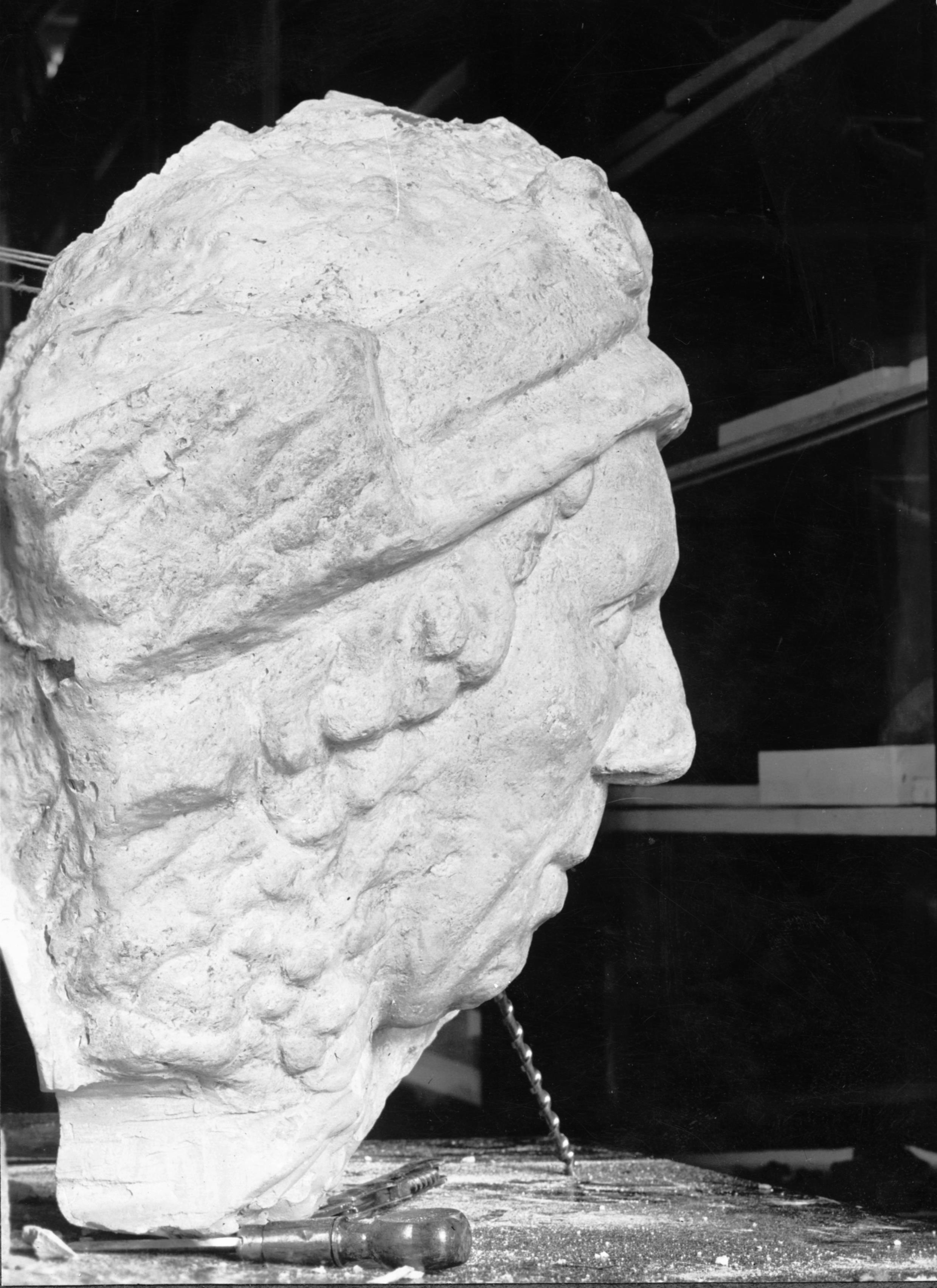 Gipsavgjutning av konsolhuvud i norra tvärskeppet. Adam von Dürens självporträtt.