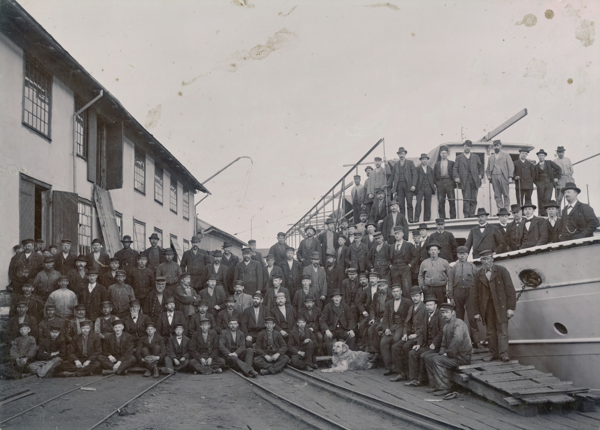 Arbetare vid Mälarvarvet vid passagerarångfartyget SÖDERTÖRN