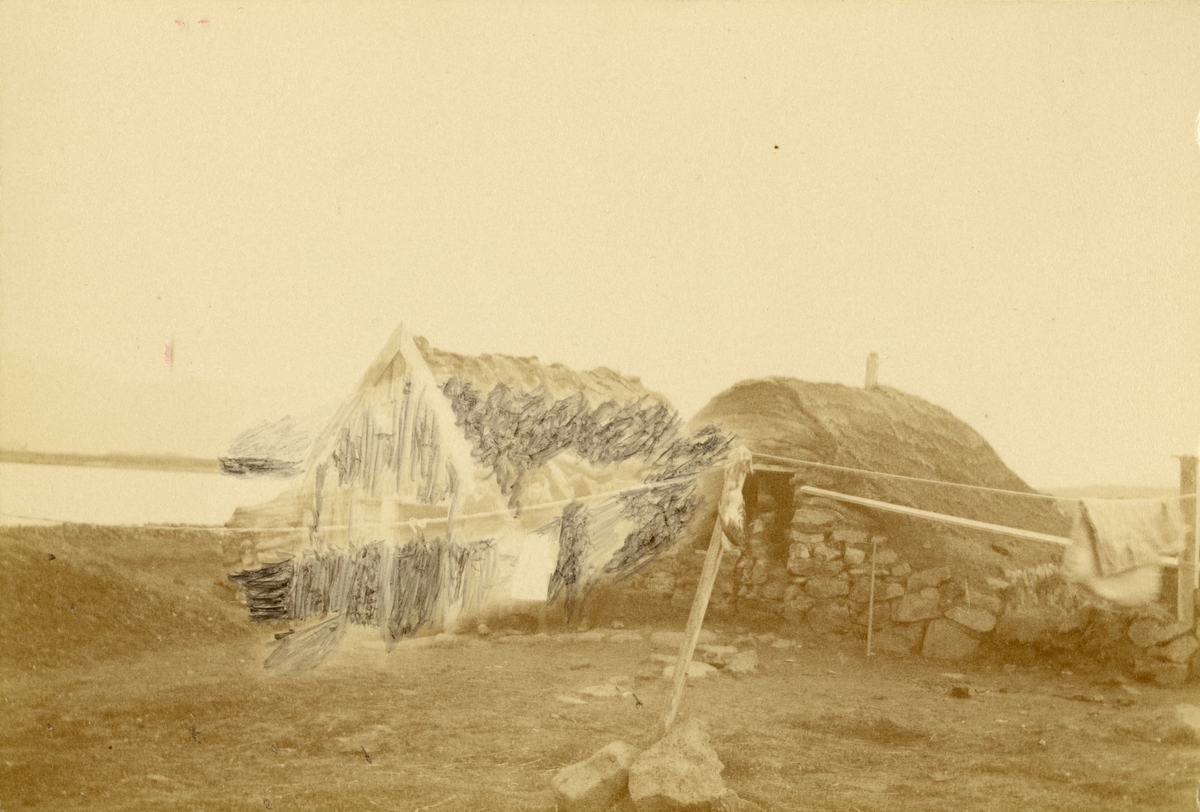 Svenska Grönlandsexpeditionen 1883. "Kojor nära kusten vid Reykjavik".
