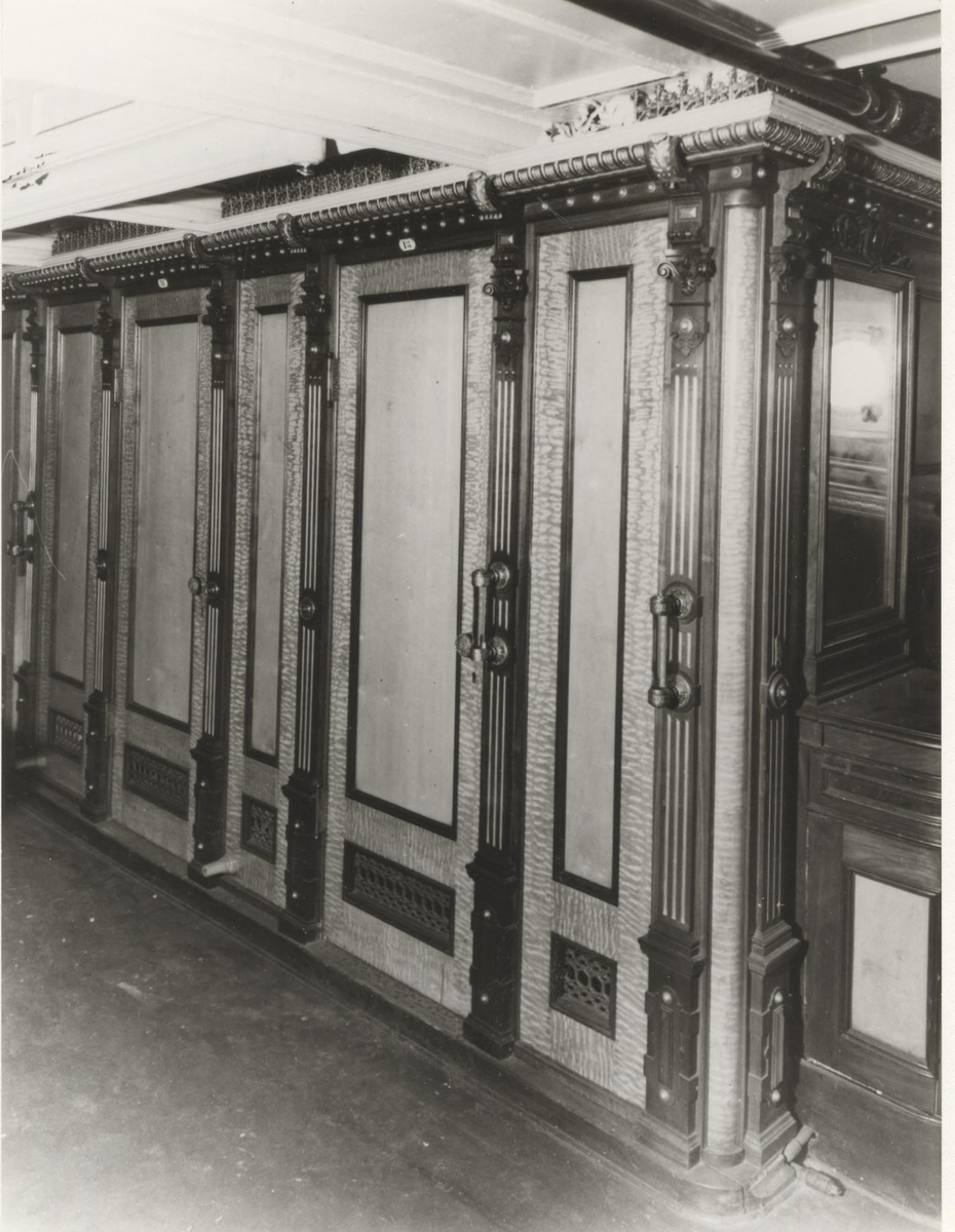 Interiörbilder från passagerarångfartyget S/S BIRGER JARL tagna i samband med skrotningen på Finnboda varv 1951.
