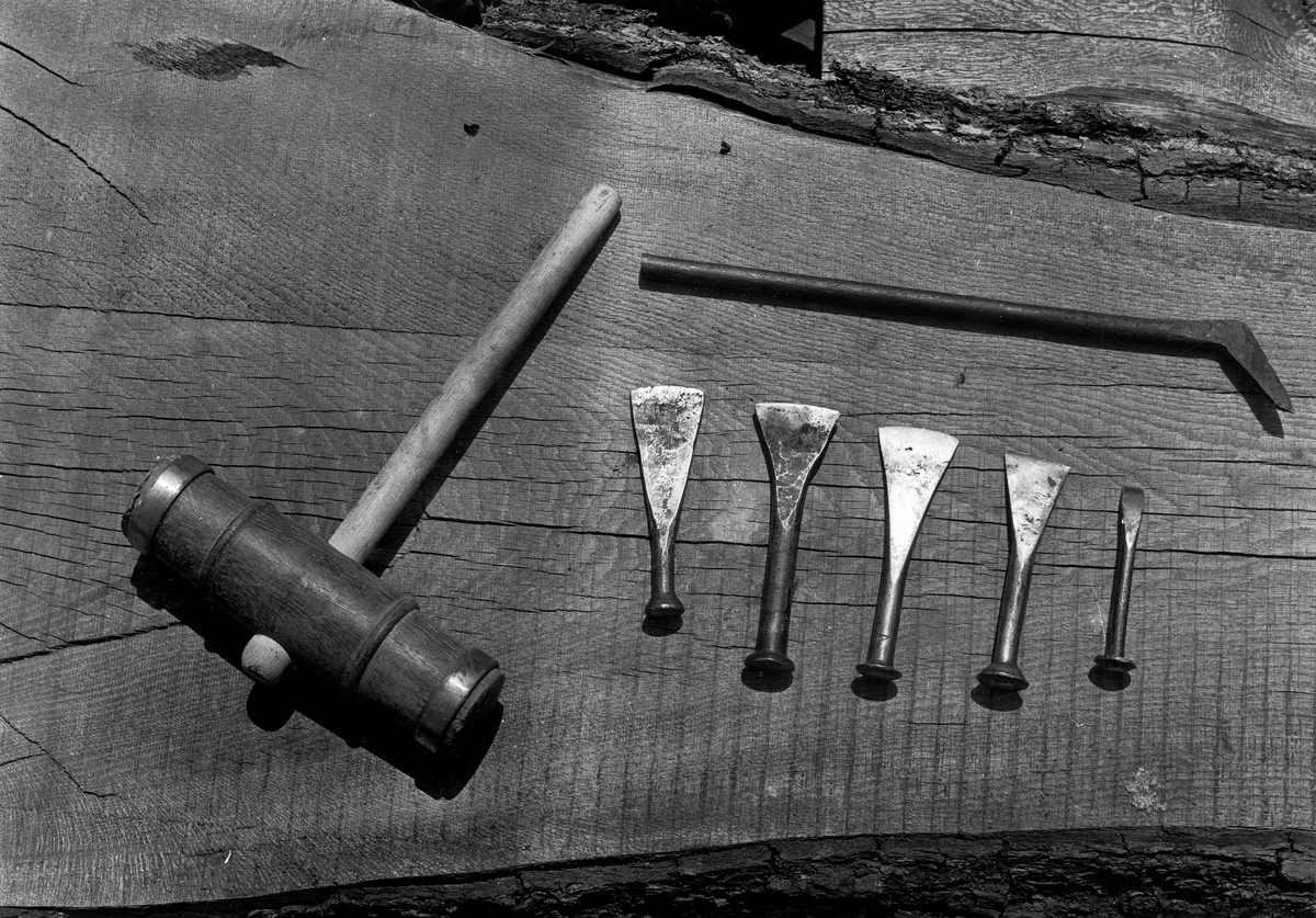 Drevjärn av olika slag: sättjärn 3 st. enkelrabb 1 st., dubbelrabb 1 st. Drevhammare.