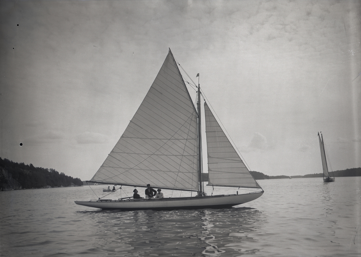 [från fotobeskrivningen:] "S/Y VIKINGEN år 1904. Fenkölsbåt. Vinnare av K.S.S.S. jubileumspokal 1897. Sjönk 1906 på Kanholmsfjärden efter kollision." [---]