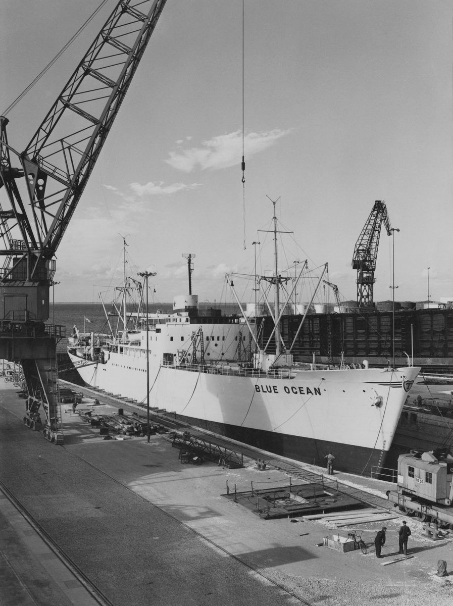 Lastmotorfartyget Blue Ocean byggt vid varvet 1946 i torrdocka.