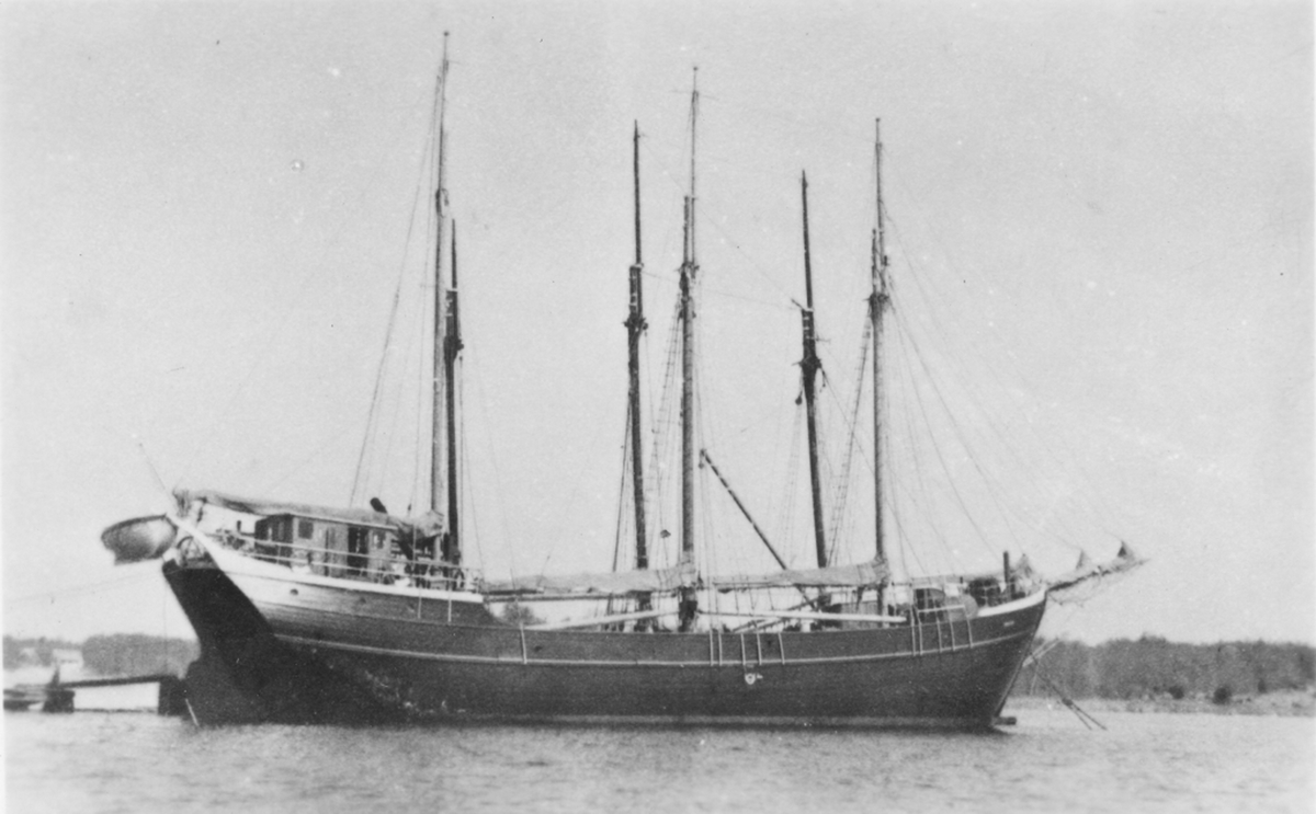 Albert Svenssons varv 1947. Nybyggda motorskonaren Ariel. Byggd för Red. AB Tellus, Oskarshamn. (Ing. Artur Wingren). Efter samma ritningar byggdes systerfartyget Eolus 1948.