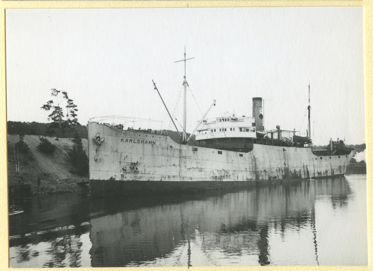 Lastångfartyget KARLSHAMN i Södertälje kanal omkring 1945.
