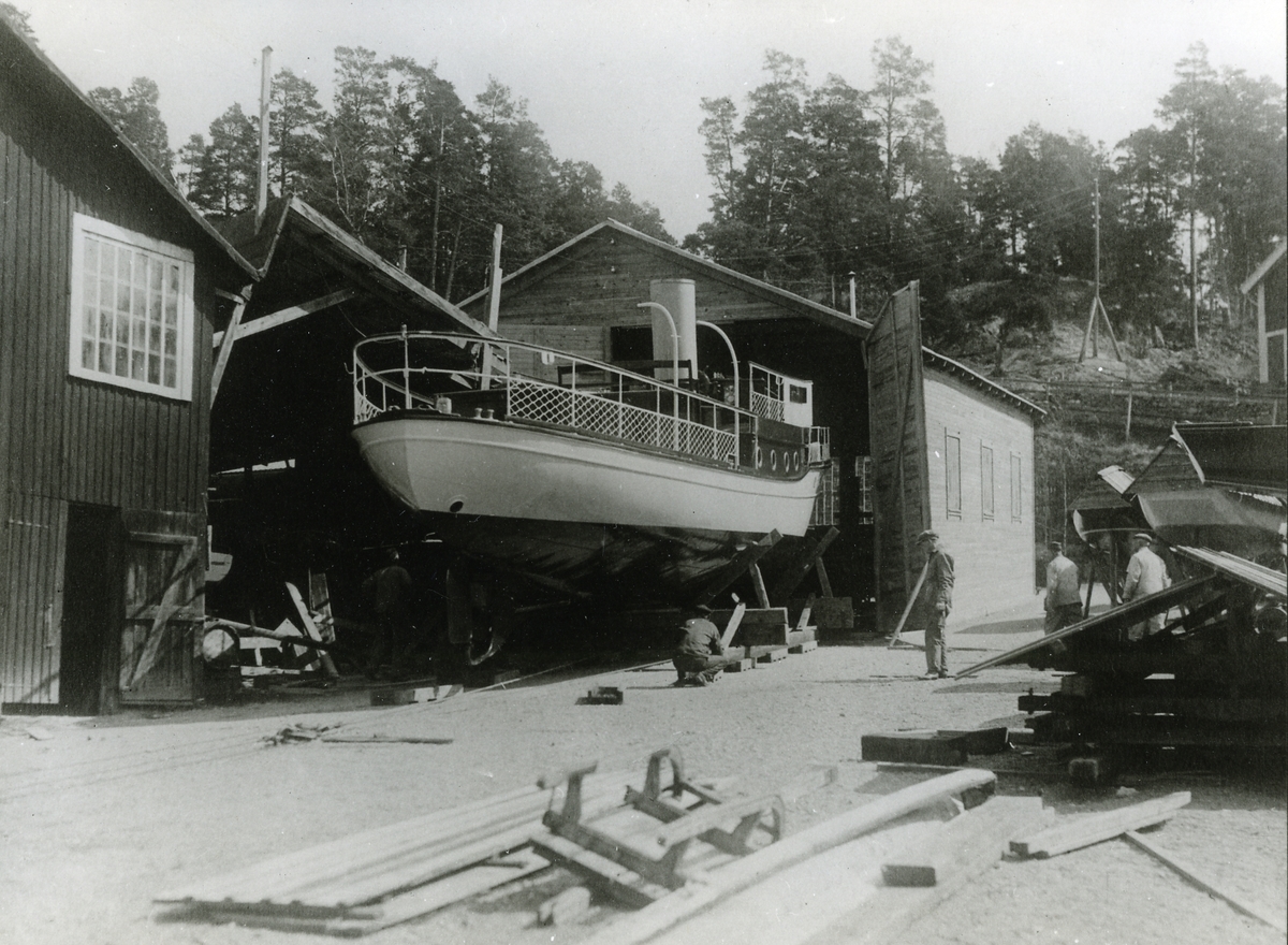 [från Fotobeskrivning:] "Neglingevarvet, sjösättning av 'Schubert-yacht'"