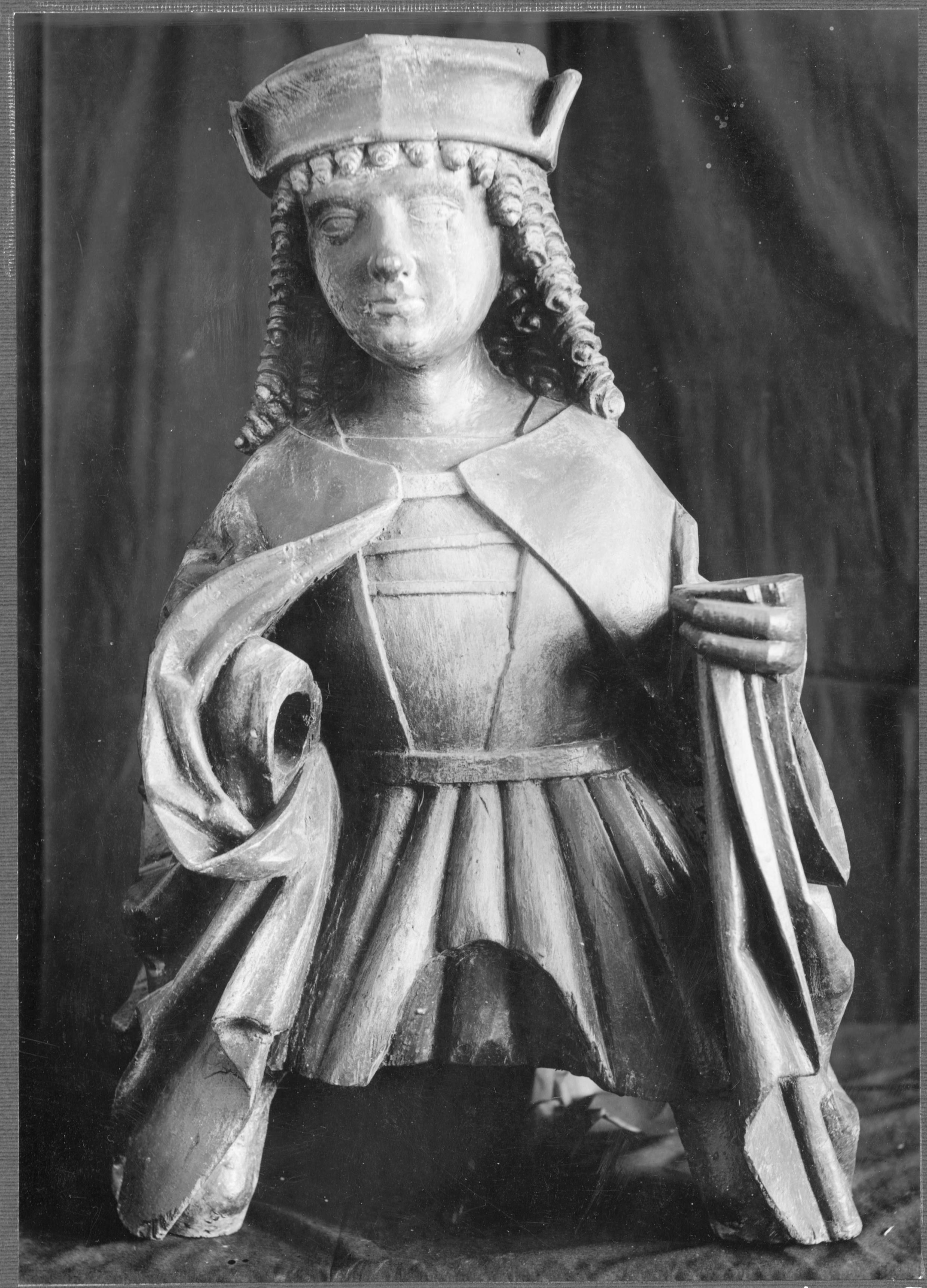 Skulptur, S:t Göran, stympad ryttarbild av ek, senare delen av 1400-talet.