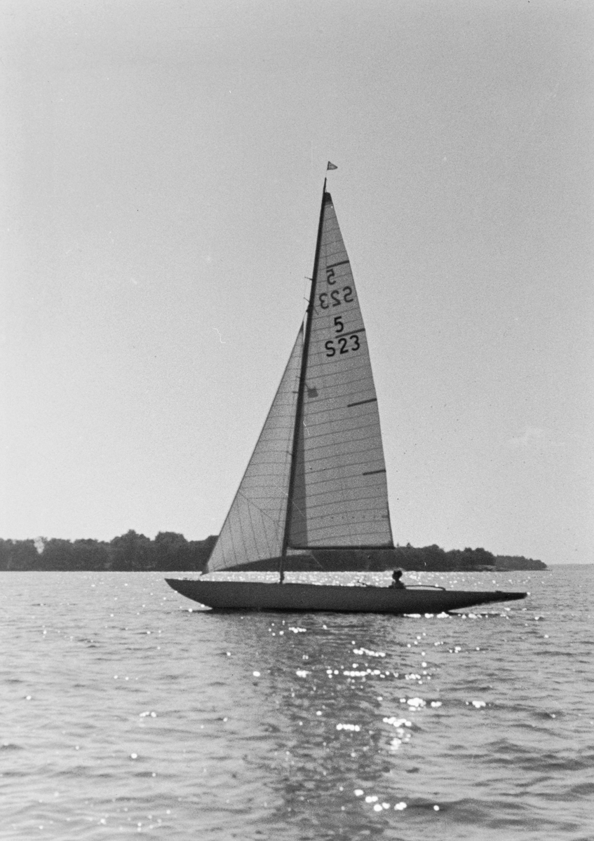 "5 m 'Rima'. Konstruktör Erik Salander. Ägare Sten Nordenskiöld Foto Sten Nordenskiöld"