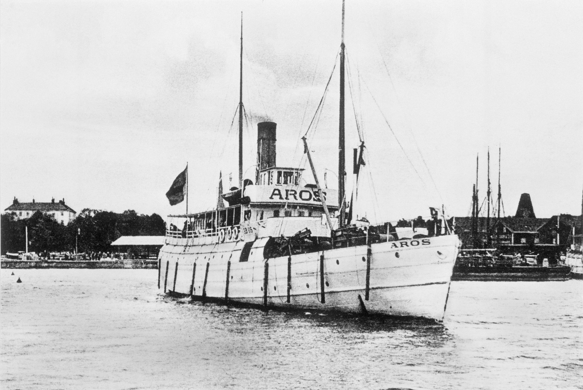 Foto i svartvitt visande passagerarångfartyg AROS av Västerås