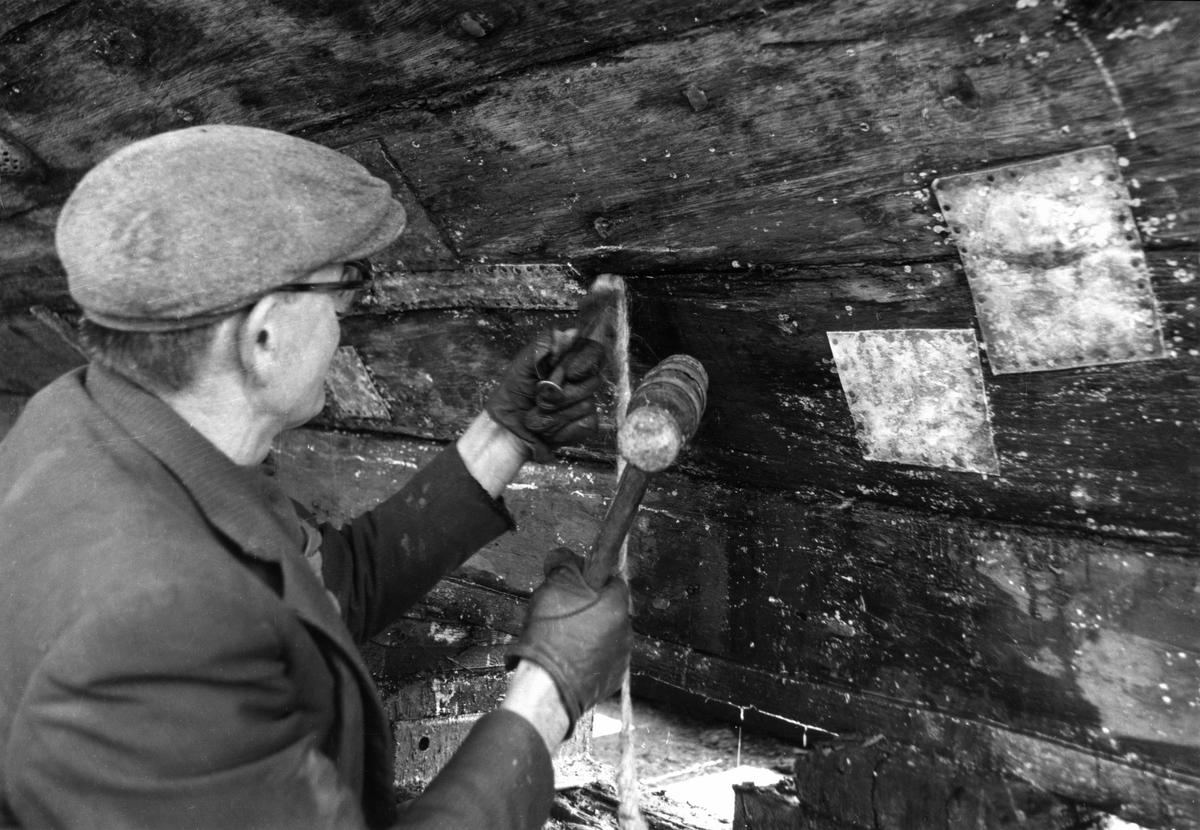 [från fotobeskrivningen:] [---] "SJOLLEN repareras. Drivning. Friedrich Müller" [---]