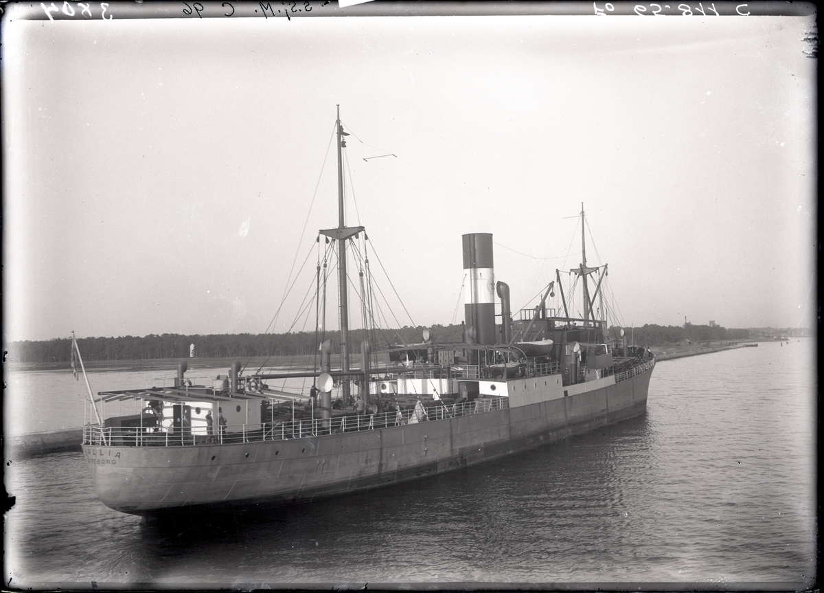 Lastångfartyget GALLIA av Göteborg i Åhus hamn den 14 maj 1921.