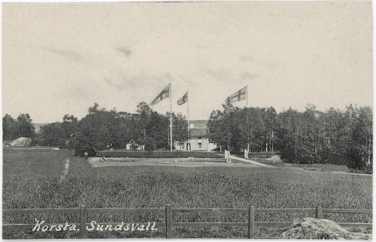 2 st vykort med motiv från byn Korsta. Fotografierna är tagna från gården Lövbacken norrut. Poststämplat 7/3 1907.