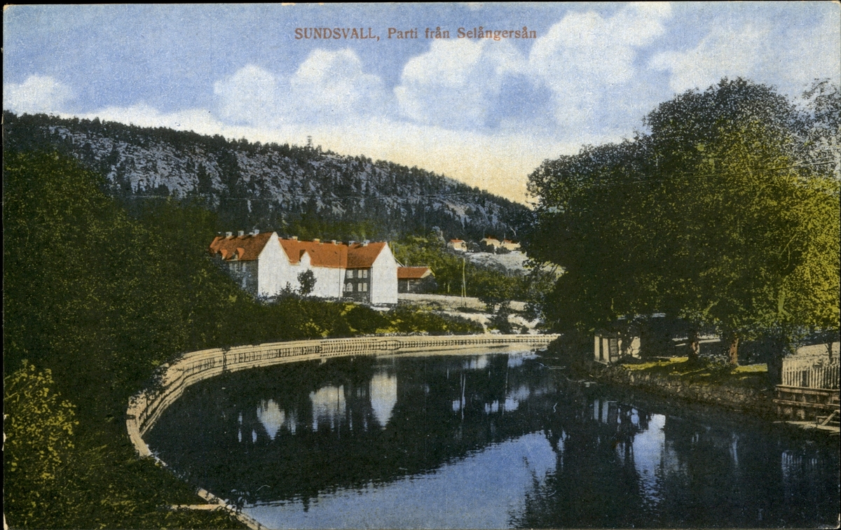 Vykort med motiv över Selångersån i Sundsvall.