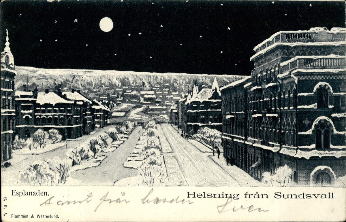 Titel: Vykort med motiv över Esplanaden i Sundsvall.