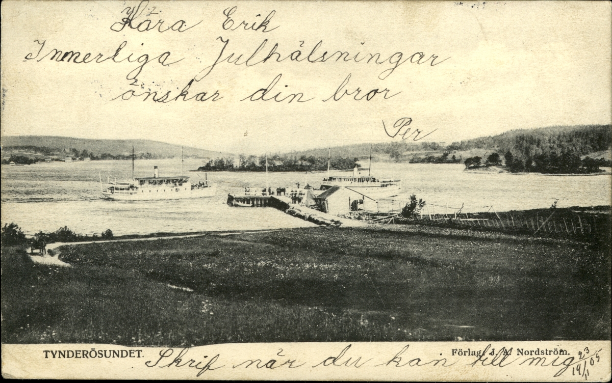 Vykort med motiv över bryggan i Tynderösundet.