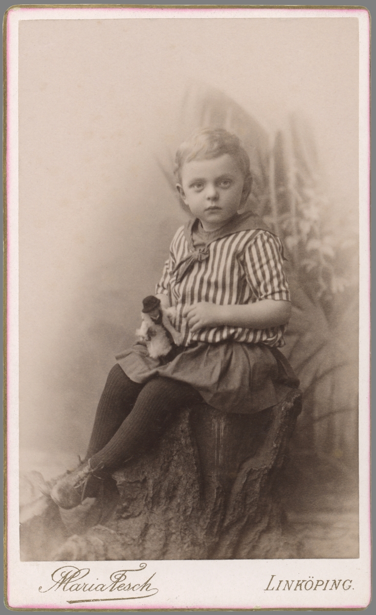 Bedårande porträtt av gossen Birger Planck. Född i Stockholm 1888 hade han följt sina föräldrar till Linköping 1890, där fadern erbjudits tjänst vid stadens läroverk. Familjen bodde kvar i Linköping till 1902 då de åter flyttade till Stockholm.