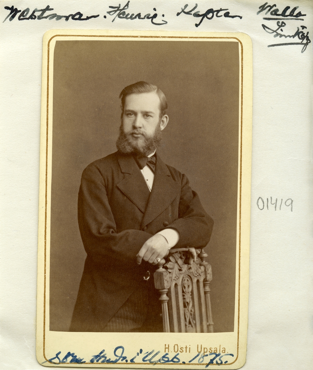 Ungdomsportätt av Henric Westman, här som student i Uppsala 1875. Son till makarna Leonard och Ida Westman, född Werner, på Valla väster om Linköping. Senare i livet kom Henric att ärva gården och driva den med gott omdöme. På ålderns höst donerade han gården med mark till Linköpings stad att förvalta i Westman-Wernerska fonden, vars betydelse för kulturlivet i Linköping kan inte överskattas.