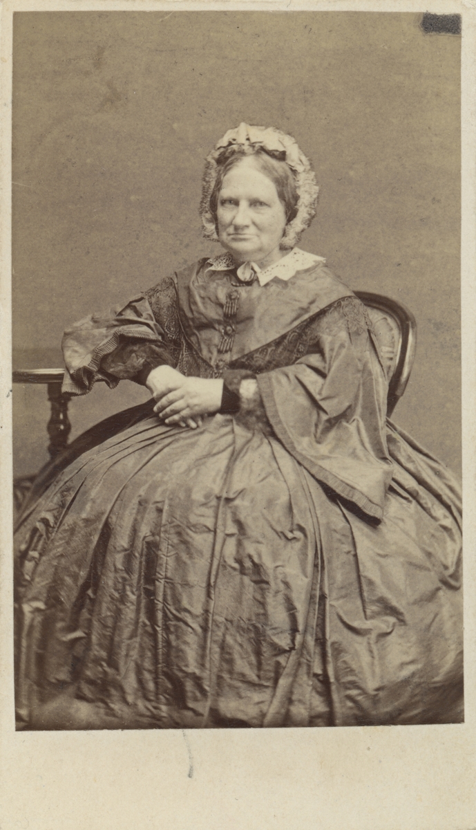 Porträtt av fröken Ulrika (Ulla) von Strussenfeldt. Dotter till kammarherren och löjtnanten Mikael von Strussenfelt och Fredrika Beata, född Lindencrona. Modern avled dessvärre i barnsängsfeber 1803. Av det skälet kom hon att växa upp hos sina morföräldrar på Hovgården i Hov socken. Familjen flyttade 1831 till Gränna, där Ulla vidare blev innehavare av en privatskola. Från 1840-talet kom hon även att blomma ut som författare. Snart nog Sveriges mest produktiva, främst bekant genom sina historiska romaner. Vid sidan av bokproduktion skrev hon många inlägg i ett flertal tidskrifter och tidningar, särskilt Östgöta Correspondenten, men även för Jönköpingsbladet, Aftonbladet och Ny illustrerad tidning. Allt hennes skrivande utkom under pseudonym, och den hon begagnade oftast var Pilgrimen. Ett par andra vanligt förekommande var Philaletes och M.B. Hon avled i Stockholm som ogift 1873.