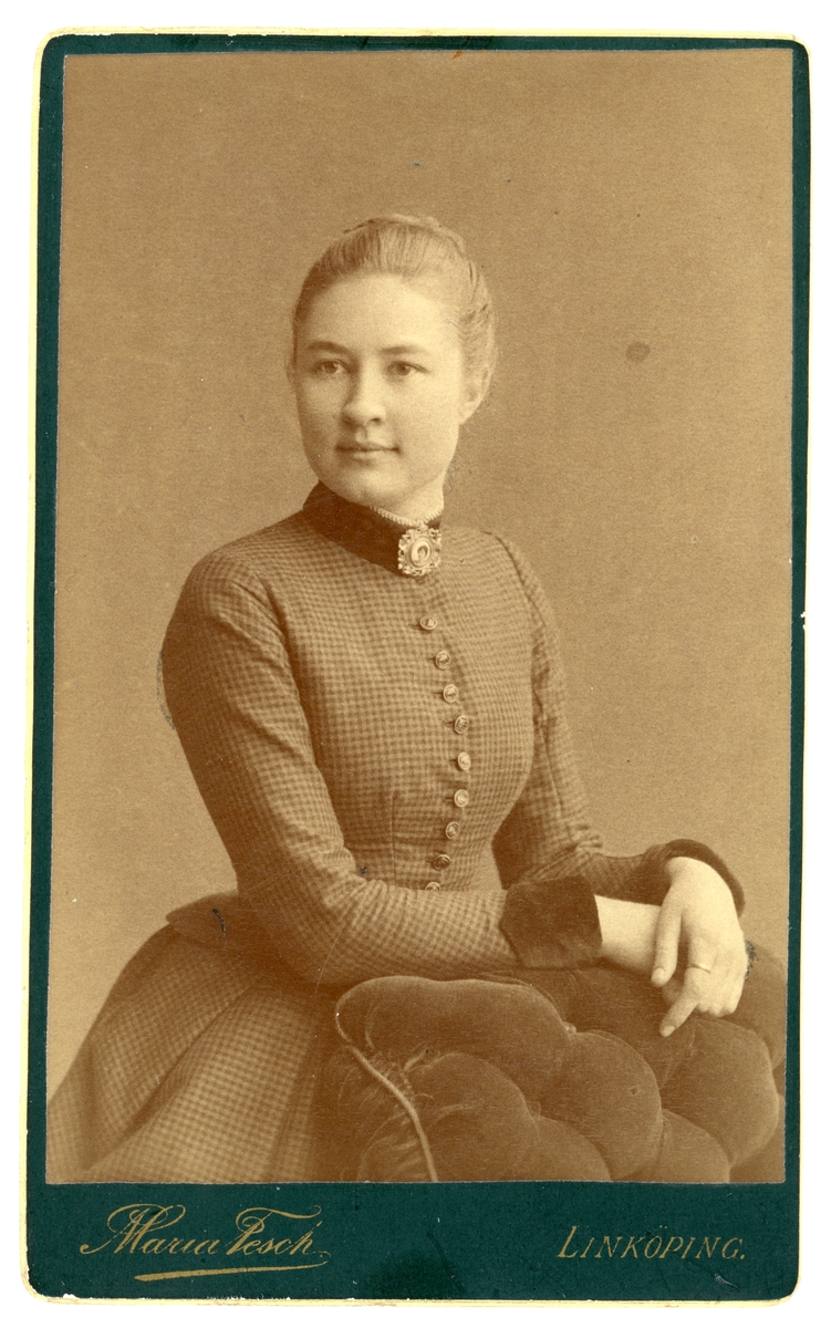 Porträtt av Ester Schmidt. Gift 1897 med provinsialläkaren i Rejmyre, Patrik Johansson. Senare namnbytt till Tyle.