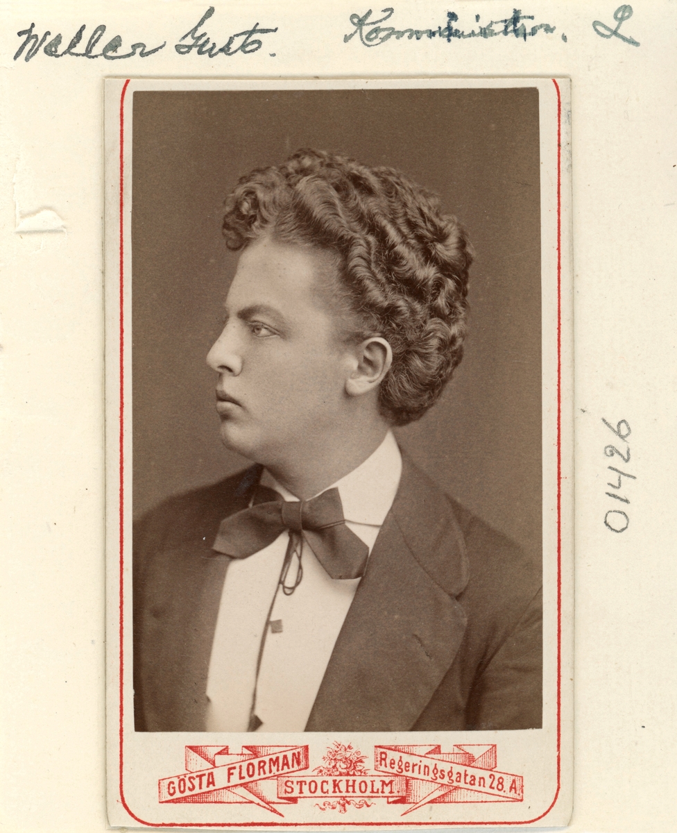 Med ledning av förekommande påskrifter och avsaknad av andra kanditater tolkas detta porträtt föreställa Gustaf Wetter. Född i Växjö 1853 som son till domprost Gustaf Wilhelm Wetter och dennes hustru Augusta Carolina Wahlqvist. Efter kyrkliga studier i Uppsala finner vi honom i förstone under korta vistelser i Appuna och Västervik. Från år 1880 får han mer stadga som brukspredikant vid Gusums bruk. I april månad 1884 bröt han emellertid upp för en komministertjänst i Blackstad och året därefter lockades han till Hannäs. I Hannäs tycks han känt sig tillrätta, ty här blev han kvar till 1896. Av något skäl bröt han upp sistnämnda år för ny tillvaro i Stockholm, där blev han kvar till sin död 1909.