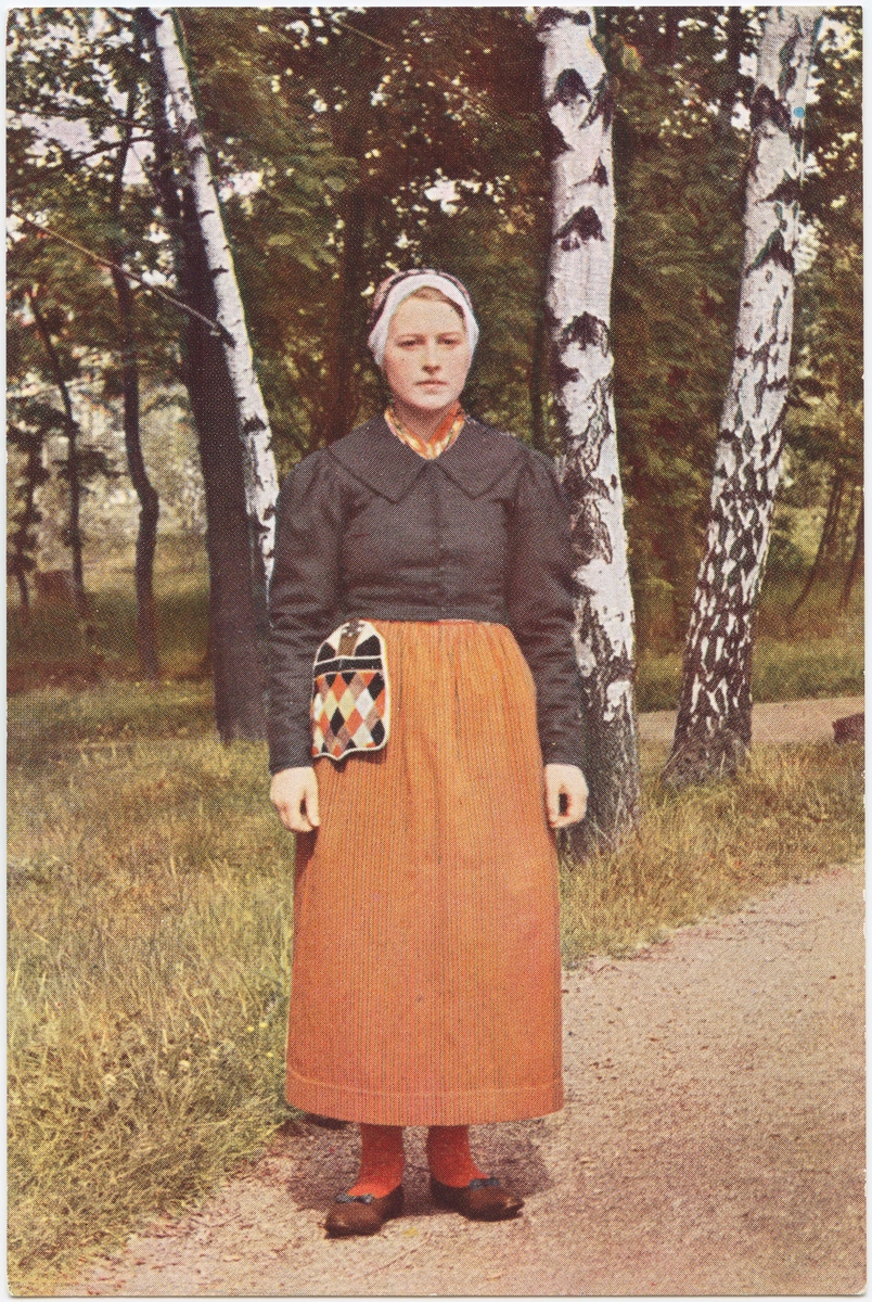 Vykort med motiv från Skansen. "Helgdagsdräkt. Stora Mellösa socken, Närke."