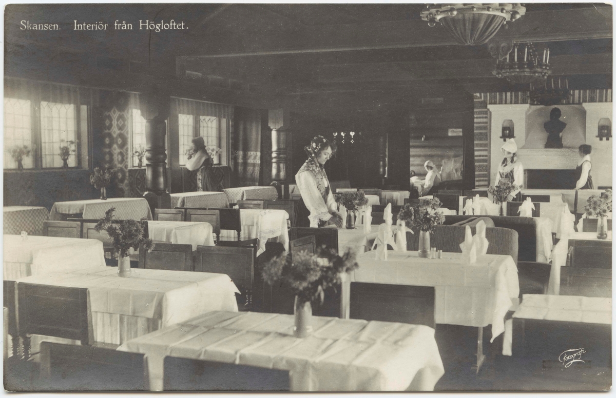 Titel: Vykort med motiv från Skansen. Interiör från Högloftet.